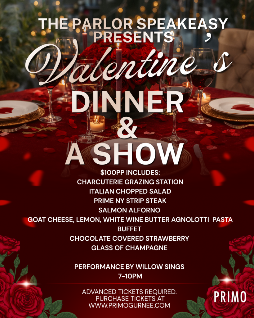 Valentine’s Dinner and a Show in the Parlor Speakeasy at Primo